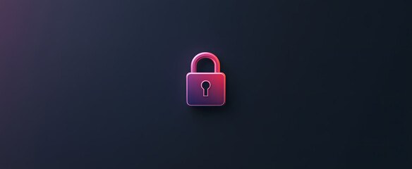 Neon lock symbol on a dark background representing cybersecurity and protection 3D Rendering