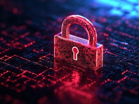 Digital Security and Data Protection Visualizing the Concept of Cybersecurity with a Locked Padlock Icon