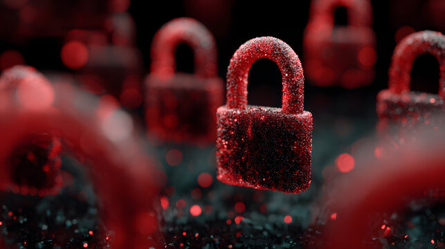 Cybersecurity overlay padlock in red for password cocept. Generative ai