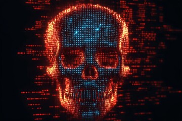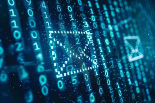 glowing holographic envelope icon of blue and red code floating over dark digital matrix, evoking futuristic secure communication and urgency