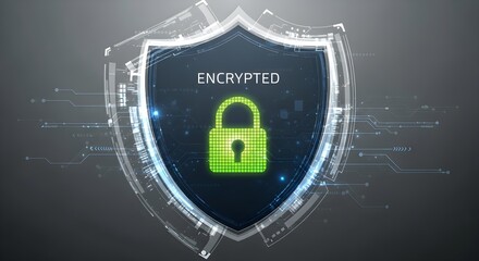 A green padlock inside a shield with the word encrypted above it on a dark gray background