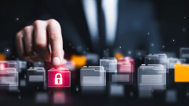 Secure data lock with digital interface in technology concept