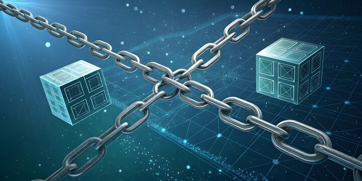 Futuristic Concept of Blockchain Technology with Chains and Cubes