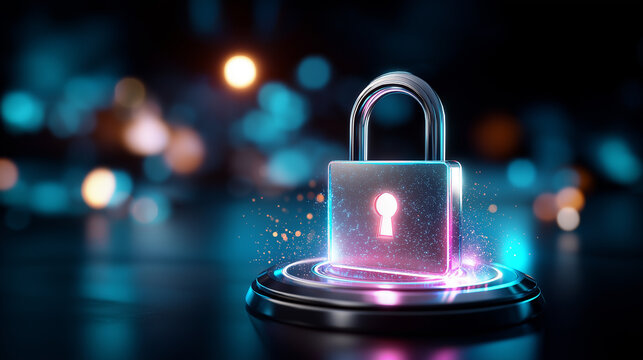 Futuristic padlock symbolizing cybersecurity and data encryption