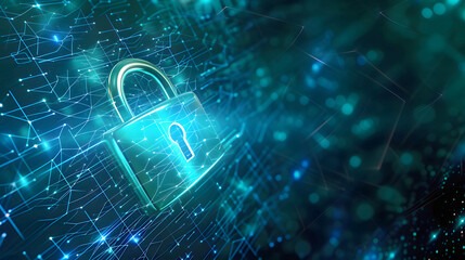 Cybersecurity concept with padlock icon on digital background