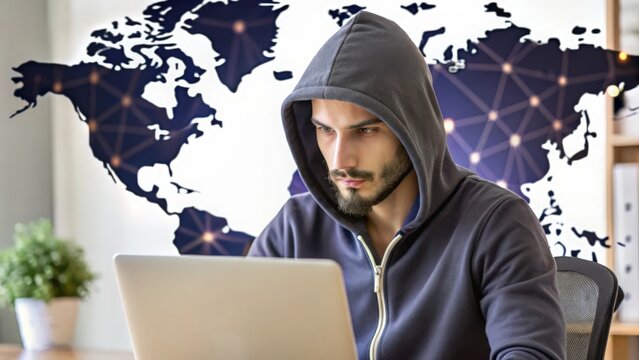 Cybersecurity expert analyzing digital threats with virus graphics overlay