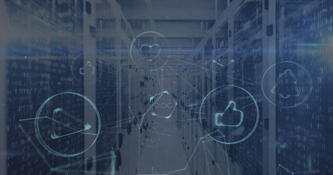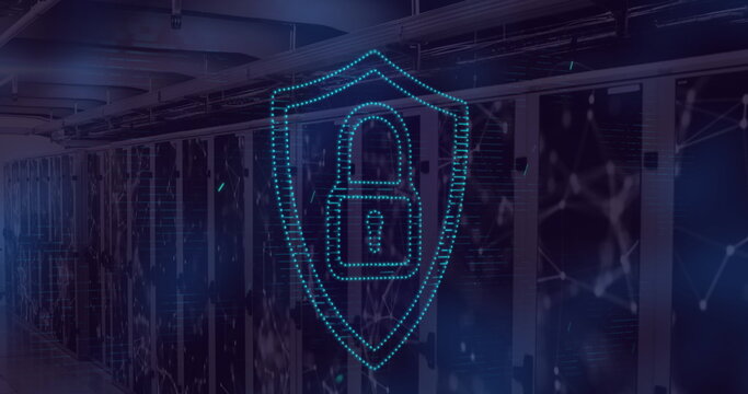 Cybersecurity Icon Over Network Connections In Server Room Images