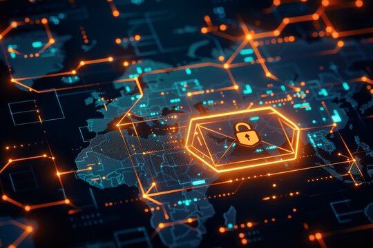 Protecting Digital Data Secure Typing on a Laptop with a Cyber Security Icon Overlay and Modern Tech