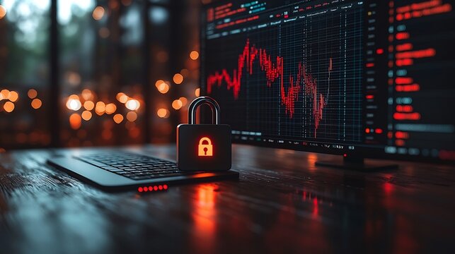 Secured Business Data Analytics Displayed on Computer Screen with Padlock Icon