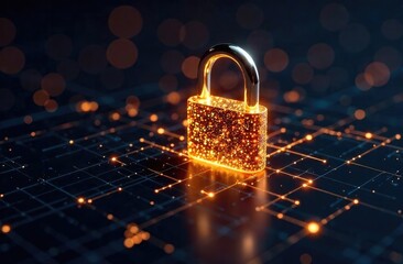 Digital padlock symbol representing cybersecurity and data protection in a high-tech environment with glowing circuitry details