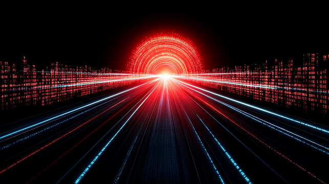 Digital data stream flowing through futuristic server room