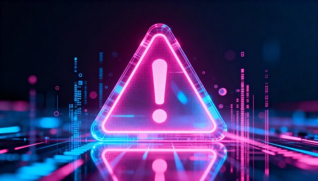 Cybersecurity warning symbol with glowing red alert icon in futuristic digital interface on dark background template for online threat banners. 3D Rendering