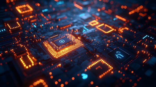 Futuristic holographic 3d circuit cube with pulsing data streams