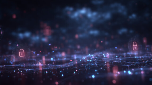 Cybersecurity Concept with Padlock Visualization on Digital Network