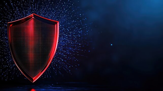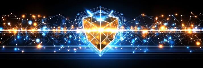 Futuristic cybersecurity shield in digital network contrast