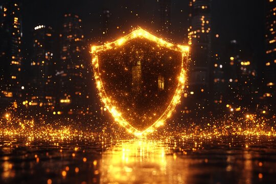 Secure digital finance. Dollar symbol on a shield over a circuit board, cybersecurity for financial transactions.