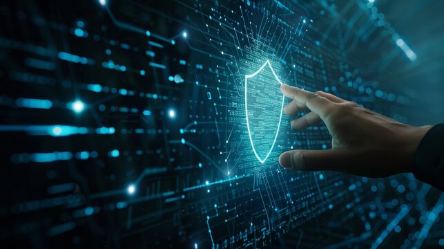 Digital padlock and shield symbolizing cybersecurity and data protection