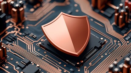 Glowing circuitry shield on digital interface symbolizing cybersecurity