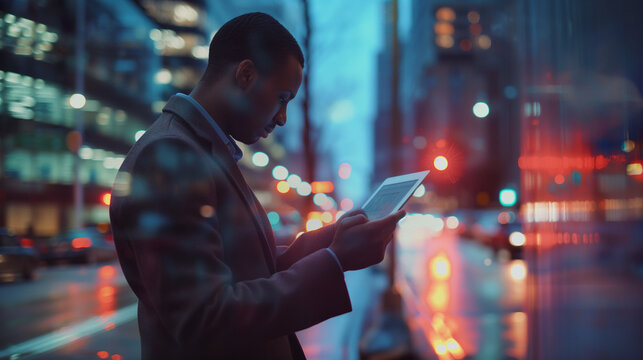 Cybersecurity threat overlays cityscape with silhouetted figures