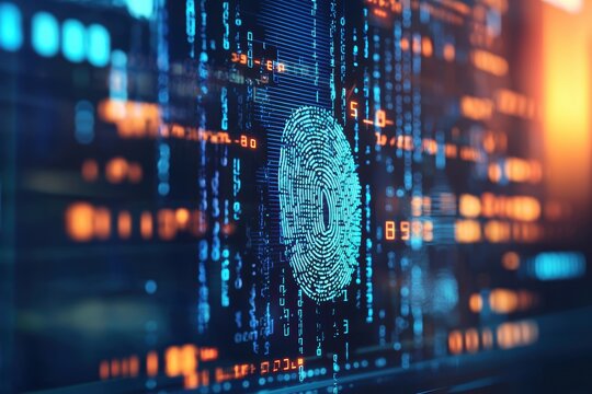 Digital Fingerprint Underlining Cybersecurity Concept Amidst Flowing Data in Modern Technology Environment