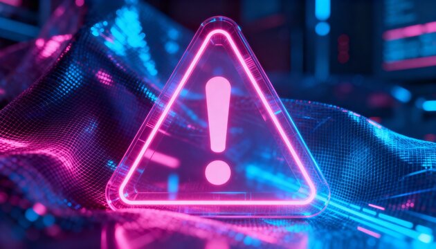 Futuristic digital interface with tech warning display