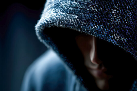 Investigation of cybersigilism practices showcasing a cloaked figure surrounded by digital chaos and binary code at dusk