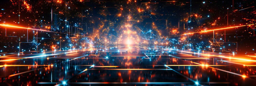 Futuristic space with digital and neon light designs, emphasizing speed and technology in a modern and abstract background