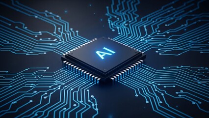 Advanced Artificial Intelligence Microchip Technology Concept with Circuitry and Digital Connections for Innovation and Future Computing Applications