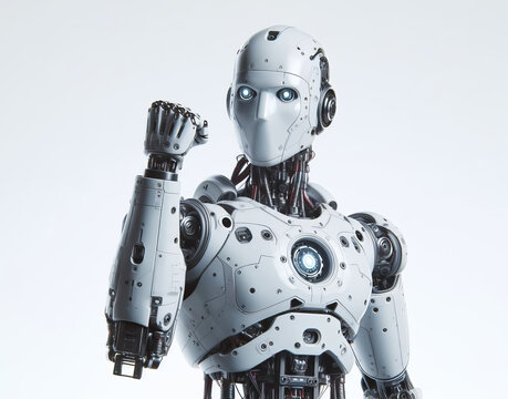 Strong Robot Humanoid, Human-Like Robot Showing Muscle,  Strength of Android