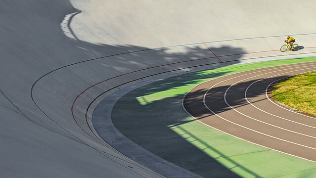 People Racing on Bicycle Velodrome. Athlete in Competitive Endurance Race at Cycle Track