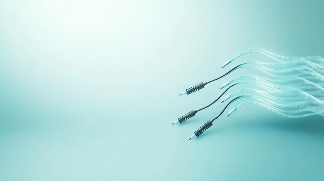 Abstract image featuring audio cables blending into soft waves, conveying connectivity and modern technology vibes. Microphone recording concept