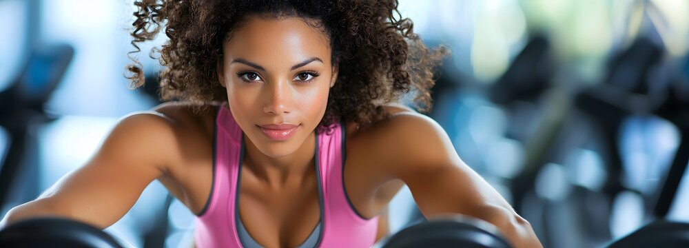 Group fitness class , featuring participants engaged in an energetic workout, such as spinning, aerobics, set against a bright, gym studio background