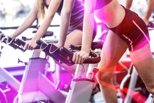 Fit people working out at spinning class
