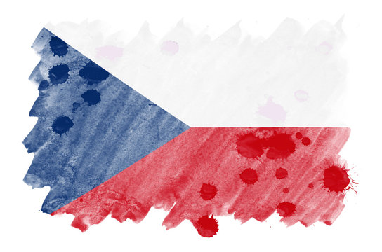 Close up of a Czech flag waving in the wind with a bright sun and bokeh lights in the background. Patriotism concept.