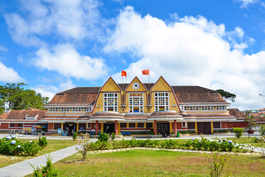 Ancient station is famous place, history destination for traveler, with railway, antique train transport tourist to visit in Dalat, Vietnam