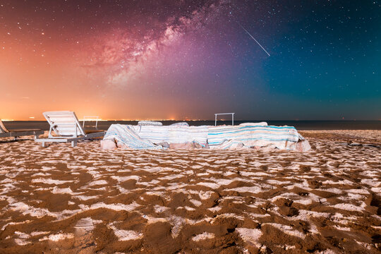 Beautiful sunset in Dahab seaside, cafes and orange sky in Dahab, Egypt