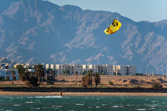 Kitesurfing at the beach in dahab Egypt
