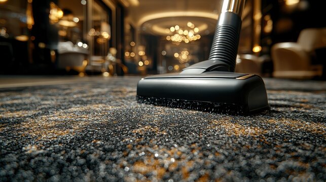 Vacuuming luxurious patterned carpet