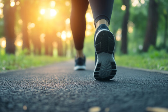 legs of woman walking jogging exercise daily morning on wooden pier, exercise daily run