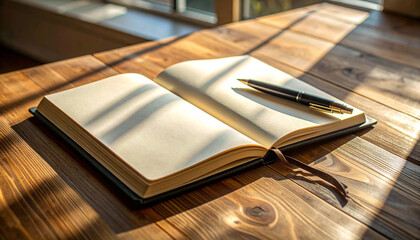Daily reflection journal page with pen and tablet on wooden desk background for mindfulness and self-awareness routine concept. Ai generative. Ai generative