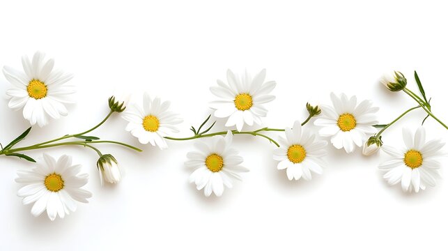 A minimalist arrangement of daisies on a clean white background with room for text generative ai