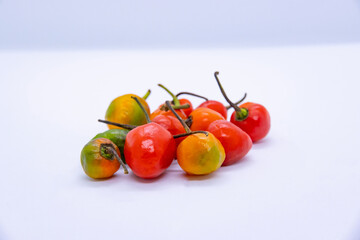 Dalle Khursani, Green Chilli Akabare Khursani, red cherry pepper chilli in Isolated White Background