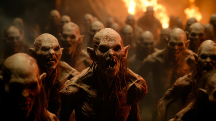 Group of sinner souls in the pit of hell, eternal damnation