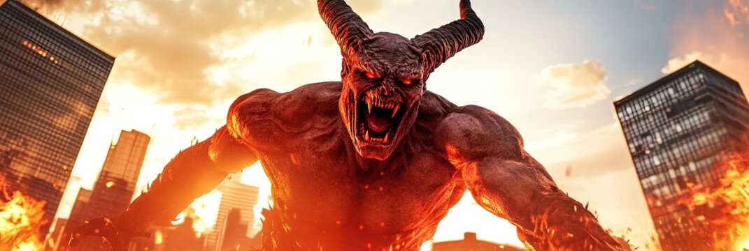 devil rampaging in modern city