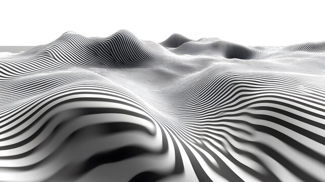 Pemandangan abstrak dinamis dengan garis-garis hitam dan putih yang mengalir