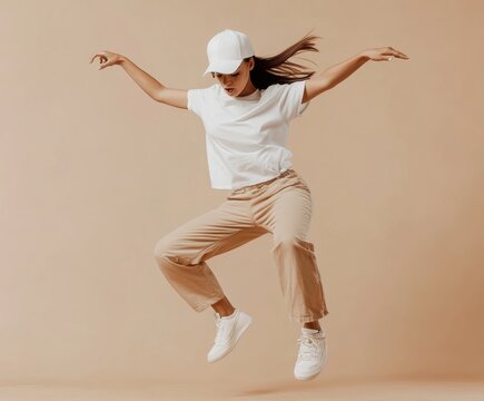 Dynamic dancer in sunlit warehouse performing urban moves