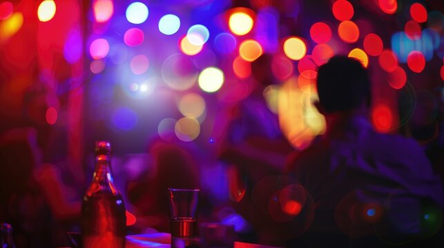 Blurry bokeh background in club during flamenco night