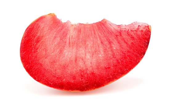 Colorful bright macro closeup slice of pluot apricot plum fruit