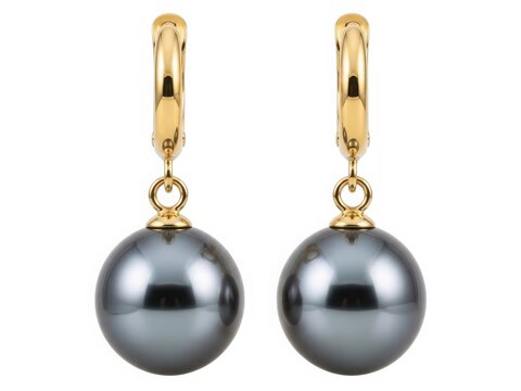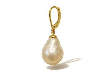 Elegant teardrop pearl earring with gold clasp isolated on transparent background