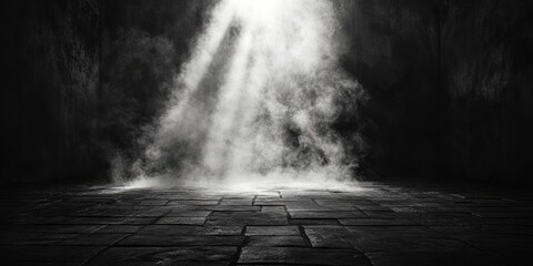 Smoky, dark interior with a spotlight